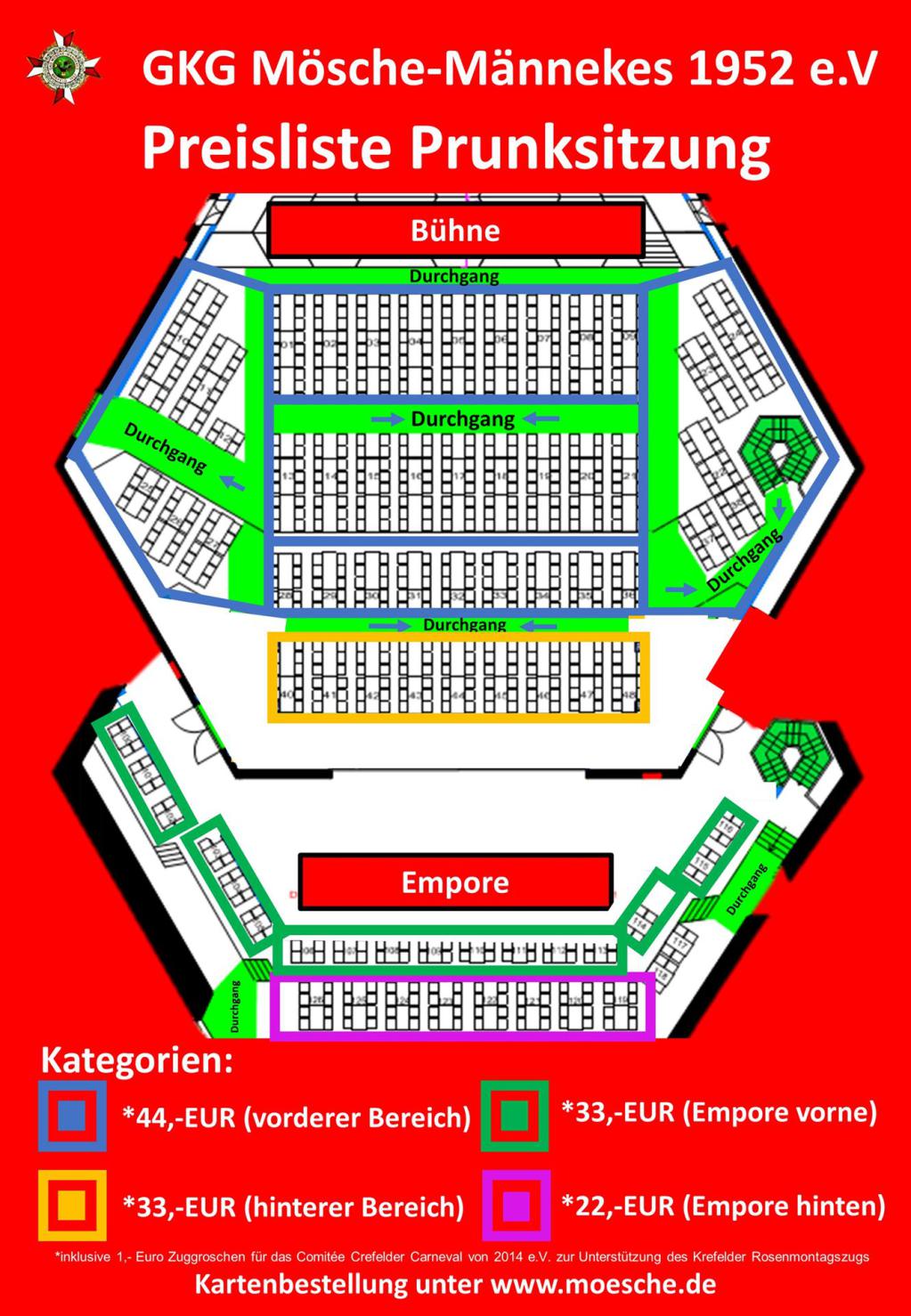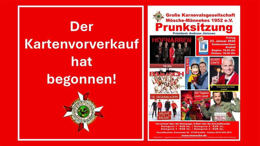 Mit Ihrer Anmeldung zu einer Veranstaltung oder Kartenbestellung willigen Sie in die Verarbeitung der von Ihnen angegebenen Kontaktdaten ein. Die Datenverarbeitung erfolgt zum Zweck der Durchführung der Veranstaltung und soll die Kommunikation zur Veranstaltung und zum Kartenversand ermöglichen. Sollten bei dieser Veranstaltung Film- und/oder Fotoaufnahmen gemacht werden, erklären Sie mit Ihrer Teilnahme Ihre Einwilligung in Verarbeitung und Verwendung der Bild-, Video- und Tonaufnahmen für Dokumentationszwecke sowie im Rahmen der Presse- und Öffentlichkeitsarbeit der GKG Mösche Männekes 1952 e.V.