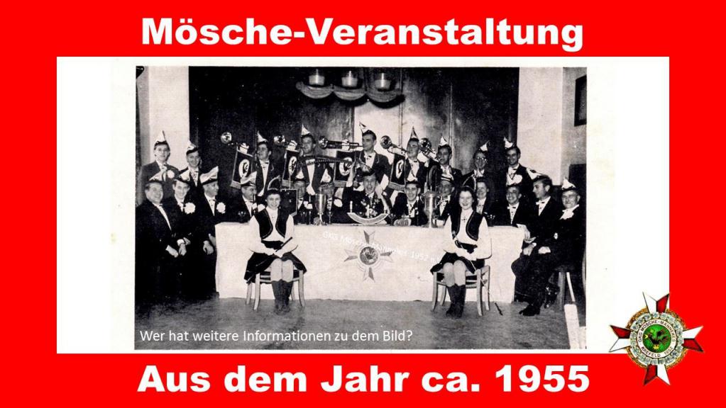66 Jahre alt wird nun die GKG Mösche-Männekes 1952 e.V. Aber ist alt der richtige Ausdruck? Nein, jung passt besser, denn jung geblieben ist unsere Gesellschaft über die ganze Zeit. Auch heute feiern wir noch genauso intensiv und lustig, wie es früher (s. historisches Foto, wahrscheinlich aus 1955) der Fall war. Welch tolle Gesellschaft die Mösche sind, hat auch schon frühzeitig der Kölner Karneval entdeckt. So war Käthe Ostermann, Gattin des allseits bekannten und beliebten Karnevalsschlager-Komponisten Willi Ostermann, unsere erste Ehrensenatorin. Im Jahr 1956 nahm sie bei der Standartenweihe die Enthüllung unserer ersten Standarte vor. Bei der abendlichen Sitzung wurde Frau Käthe Ostermann zur Ehrensenatorin ernannt. Über viele Jahre gab es freundschaftliche Kontakte und auch heute sind die Mösche dem Kölner Karneval nach wie vor eng verbunden.