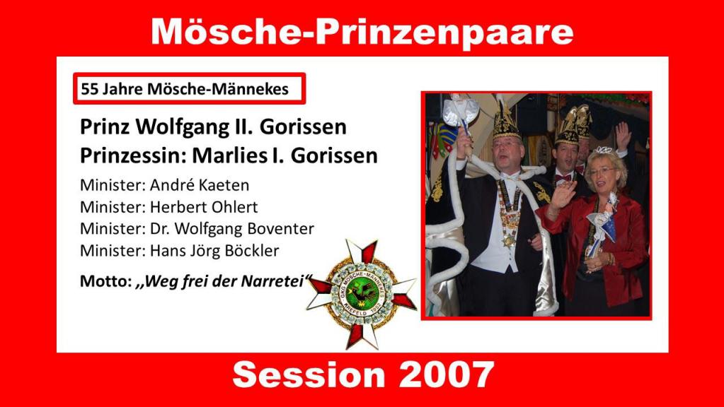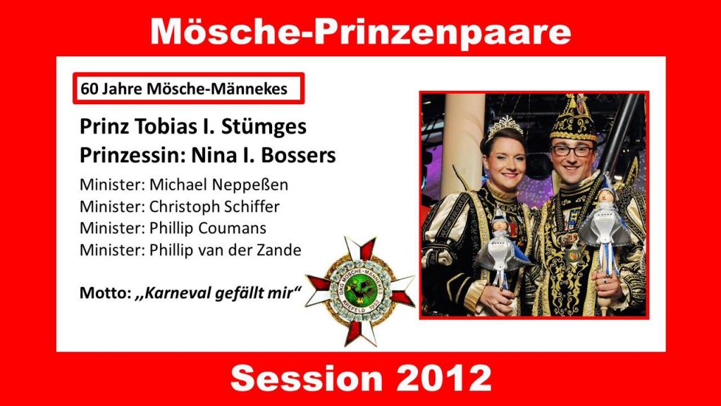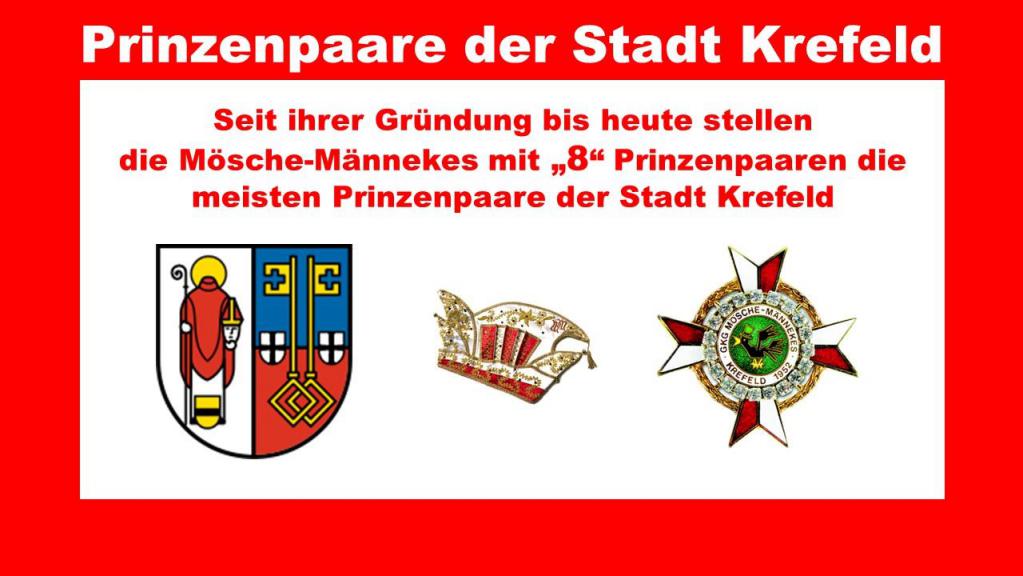 Im April 1952 die Karnevalsgesellschaft Mösche-Männekes im Lokal August Fucken aus der Taufe gehoben wurde und hat seit ihrer Gründung bis heute die meisten Prinzenpaare in Krefeld gestellt hat.