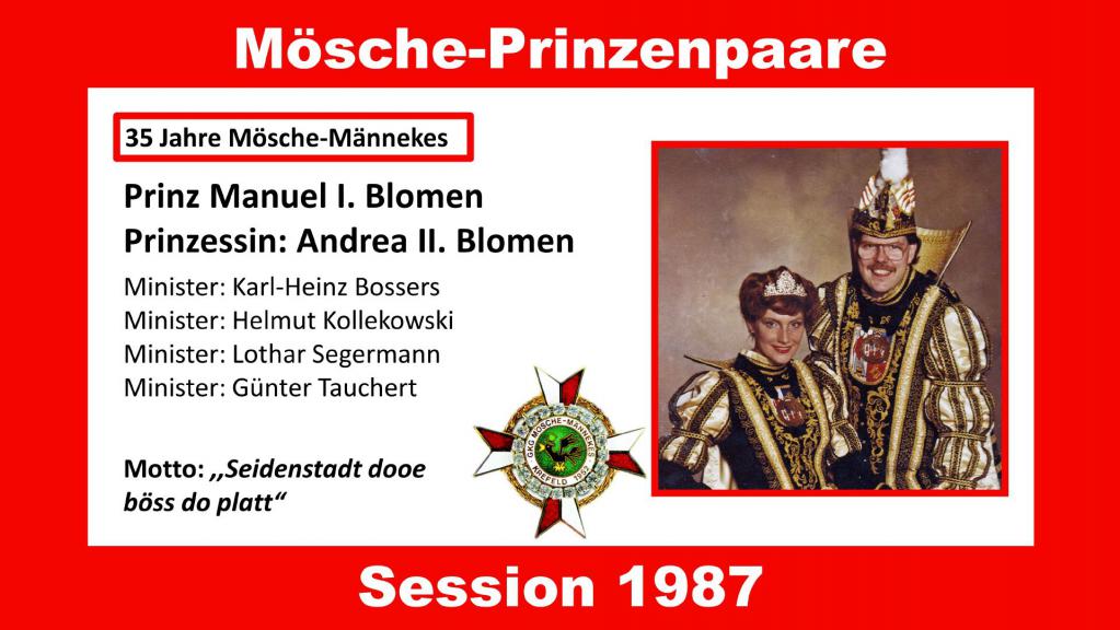 1987 Manuel I. und Andrea II., Prinzenpaar der Stadt Krefeld